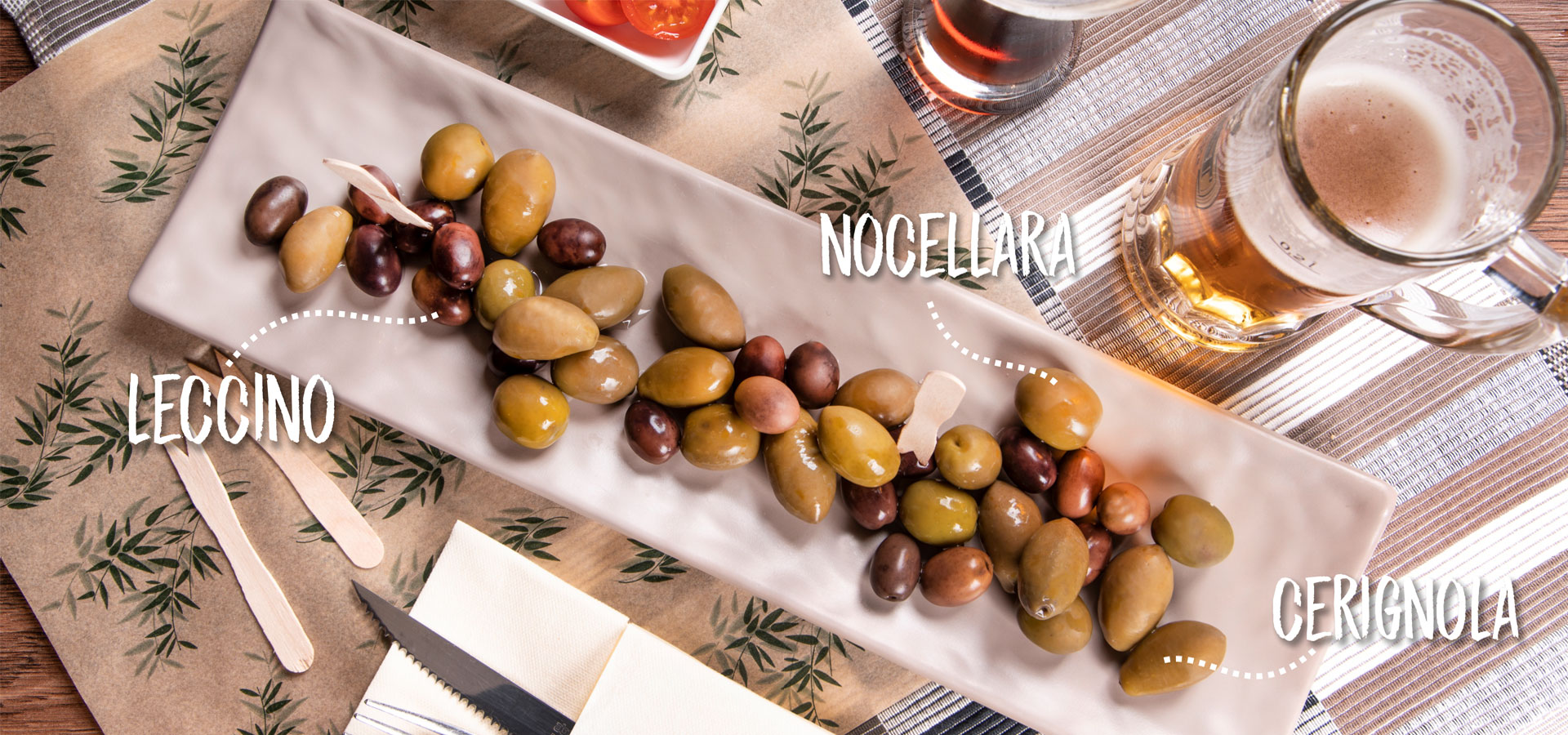 Leccino, Nocellara e Bella di Cerignola un tris di olive dal gusto intenso, particolarmente stuzzicanti e appetitose.